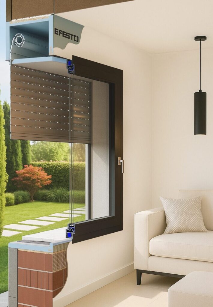Il sistema Aneva Grecale di Efesto è una soluzione monoblocco termoisolante progettata per integrare perfettamente il sistema avvolgibile nel nodo finestra, migliorando le prestazioni energetiche dell’edificio e semplificando le fasi di installazione in cantiere.
